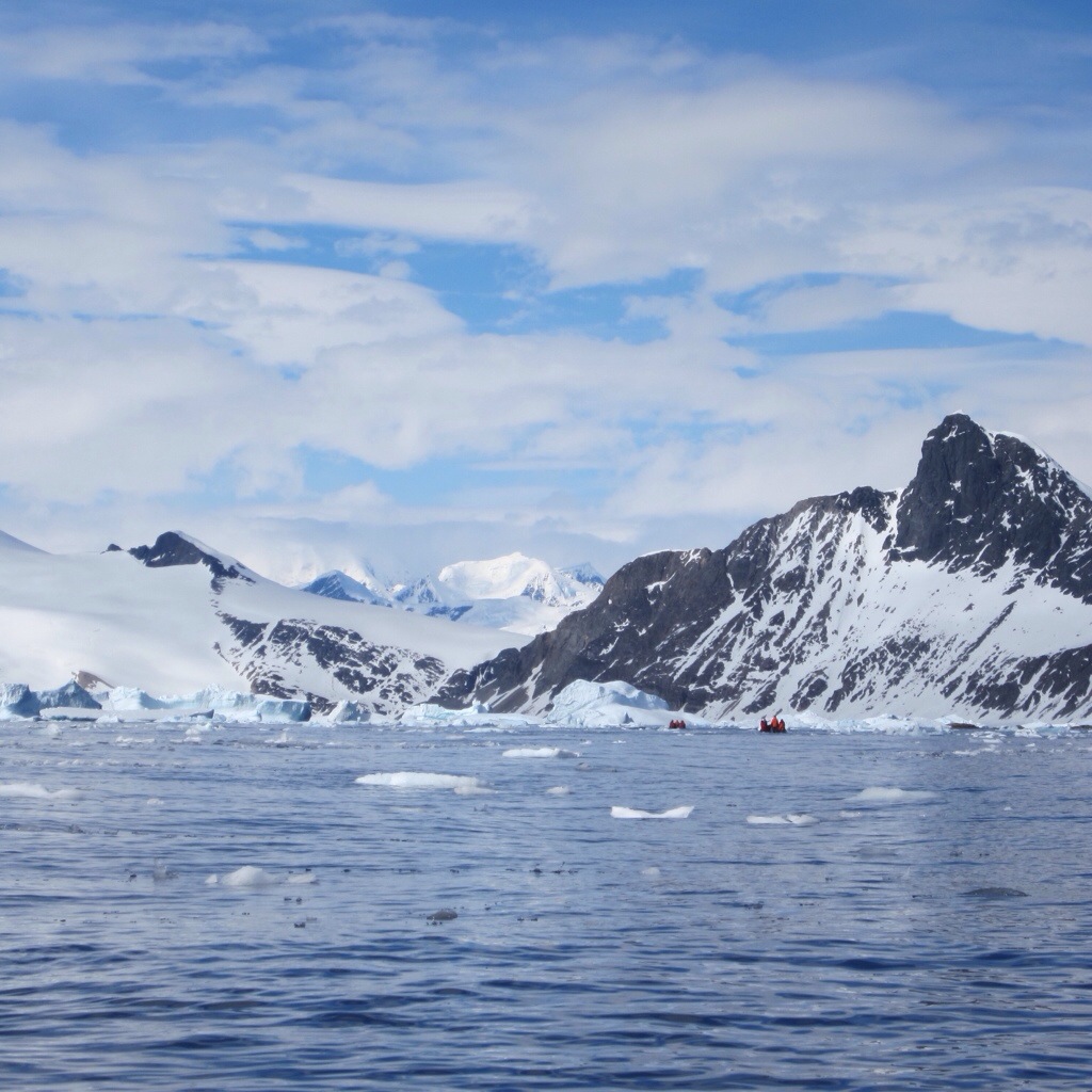 The red Argentinian base stood out among its mountainous background, so distinct in front of the pure white snow. I sat next to Simon and he said even though that base is there for research, the Argentineans just want to wave their flag to claim the land in case the Antarctic Treaty falls through. But, he said, the treaty is not up for renewal until 2049. We saw a couple of seals too, and I saw his whiskers through the binoculars. Simon said that if I ever do come back that I should extend my journey to South Georgia and the Falkland Islands – that would make the whole trip about 18 days – I would love to come back one day. We have been extremely lucky though for really good weather everyday. There was a point during the cruise where we sat in front of the glacier and the icebergs and Eva decided to turn off the engine.