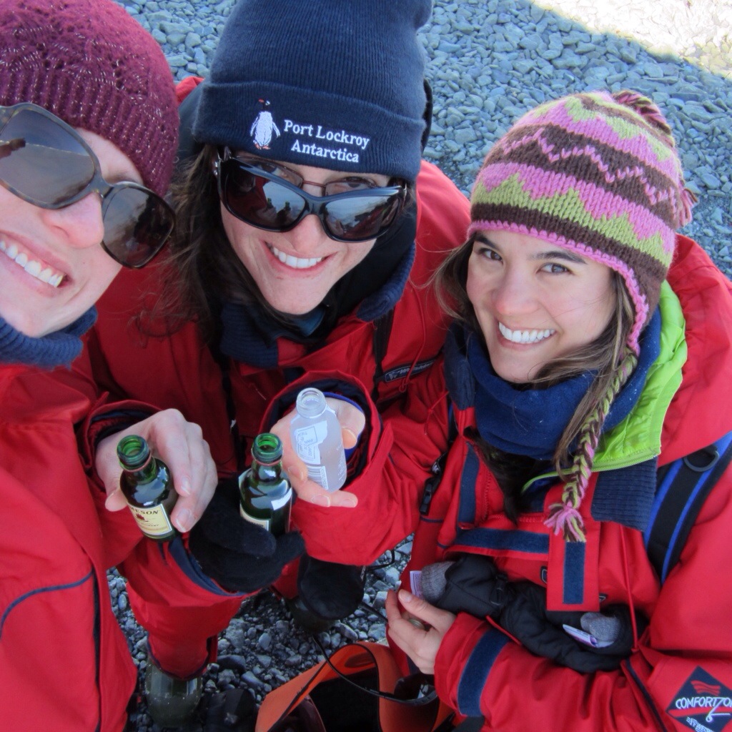 Simon pointed out an an Adélie penguin as well, which has a white belly and black body and head with a white eye ring. It was my least favorite landing, mainly because there wasn’t too much to it, but the others have already been spectacular. We snuck around one side of the beach and pulled out the two Jameson’s and Absolut. Oh shucks, I took a look at the vodka and it was vanilla flavored. Gross. Oh well. Cheers. A small sip of the vodka and I had to wash it down with the Jameson’s. A few of the penguins came up to us just a few feet away.