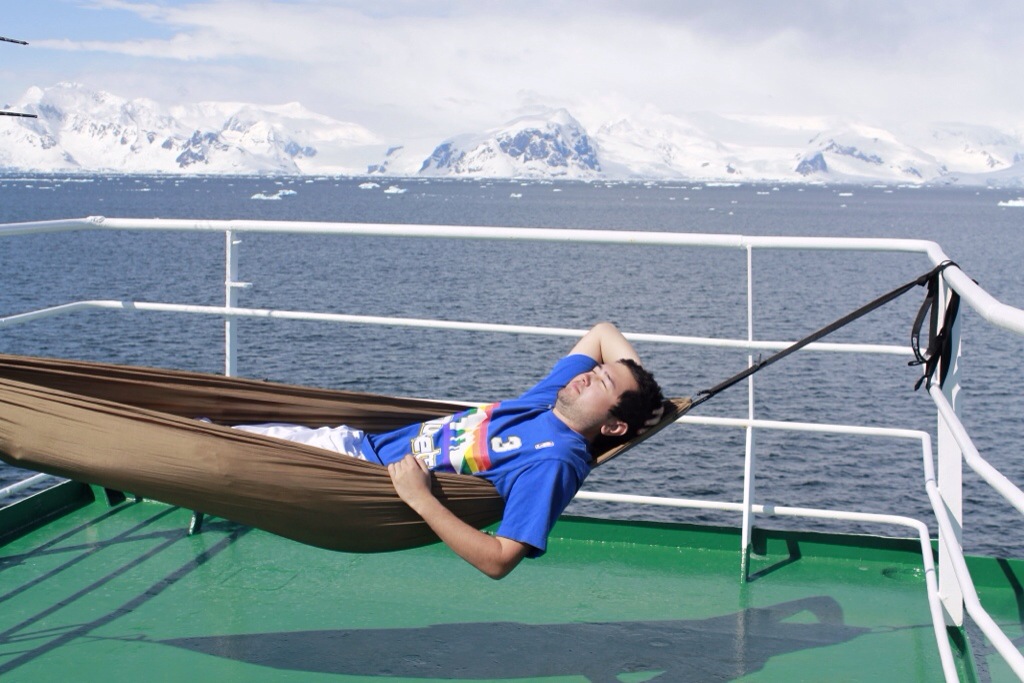 The station’s doctor burned the living quarters down in 1984 when he found out he had to spend another period of time there since they didn’t have anyone to replace him. The people left at the shore had to live in tents until the US research trawler rescued them. We hiked up a sort of peak, and an amazing view was before us. Some people from the Chinese group decided to take off their shirts and take pictures with lots of banners. This went on for some time. Another lady from that group tried to stop me from going to the top, but I just went ahead of Kathleen and Kim instead. A few of us took pictures with the “I’ve been on every continent” sign.