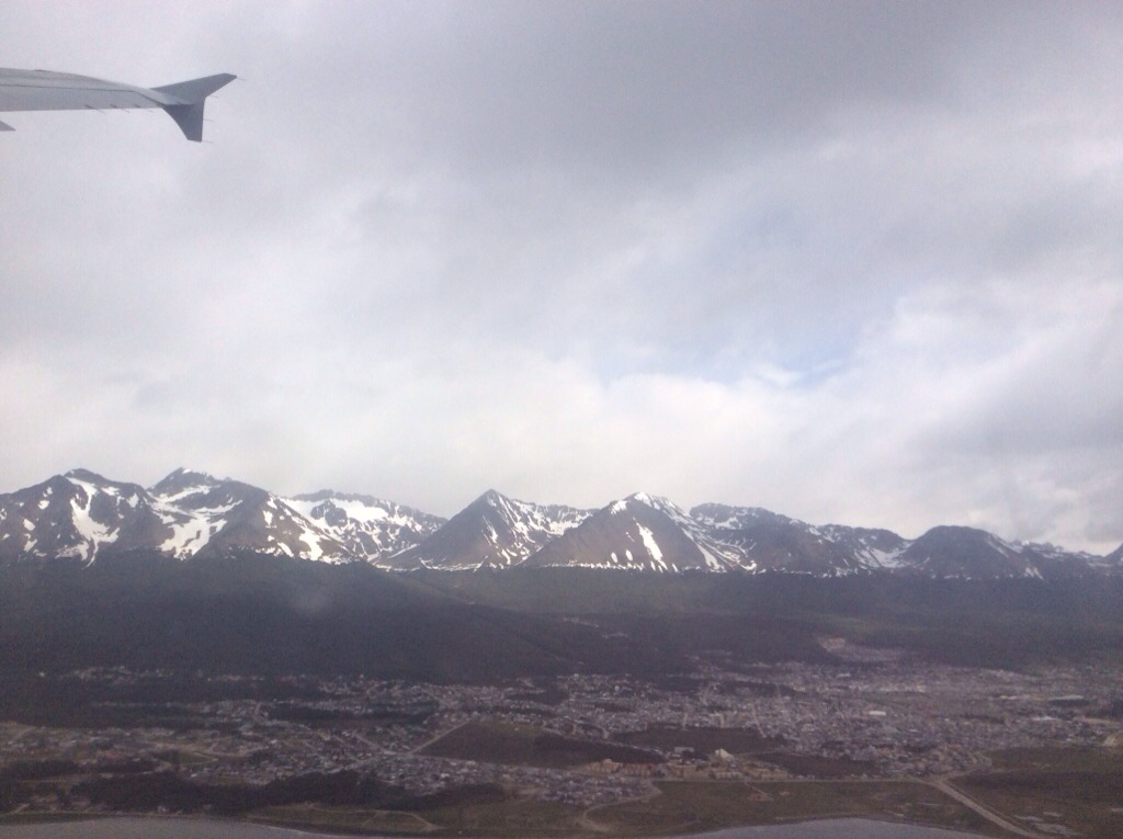 We flew to El Calafate and now back on the bus (where I started this blog post) to El Chaltén. I had a great view from my seat leaving Ushuaia.