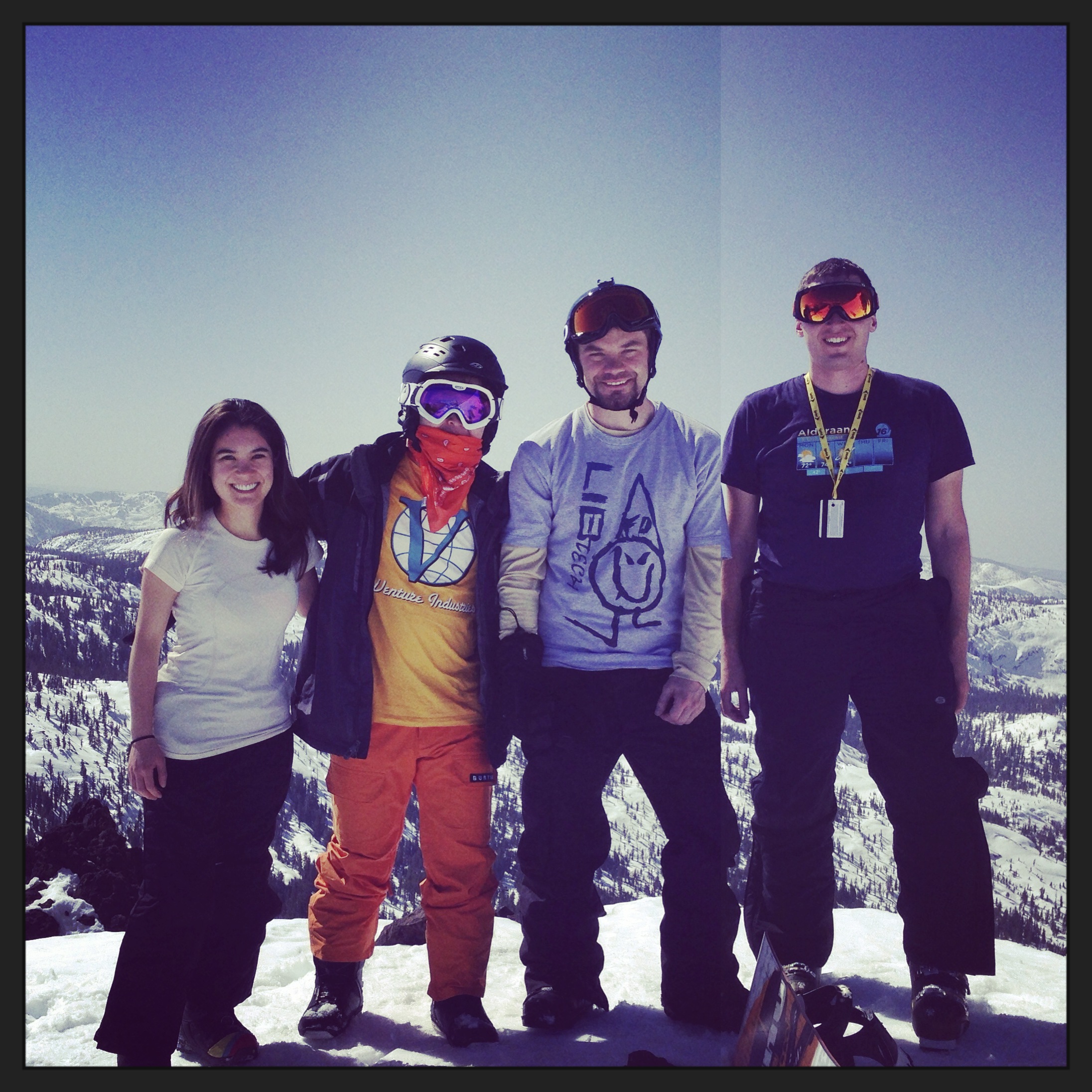 But one of the best parts of Tahoe this year was hiking up “99 steps.” It was Nick’s idea…and was brilliant. You take the chairlift up, take off your board and skis and go for a hike. But seriously, 99 steps? Yeah right. I was out of breath. But we did it. We made it. And at 9,758 feet it was a great view – totally worth it.