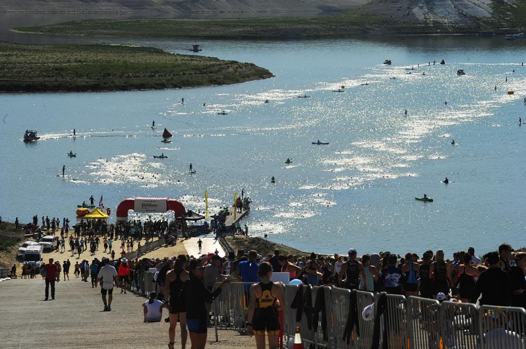 We walked down and went to our numbered spot. I got on my wetsuit and met Emily, my age who was all suited up with her goggles on. We chatted all the way down to the lake and in those 8 minutes, I had made a new friend and one who said we should be Tri training partners (as we lived in the same area). We wished each other luck right before the horn went off for our wave (Females 20-29) to start.