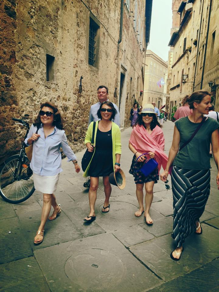 This trip, a journey to Tuscany, was one where I got to travel with friends and family: my mom and dad – coolest parents ever; Khalil and Cheryl – known me since I was little and really fun to hang out with; Robin and Barbara – not only best friends but have pretty much adopted me into their family back in California; Joely and Mark – who are also absolutely amazing; Peter and Maria – we share tech, sports, and a love for food in common, oh and a love for mountains and yoga too 🙂