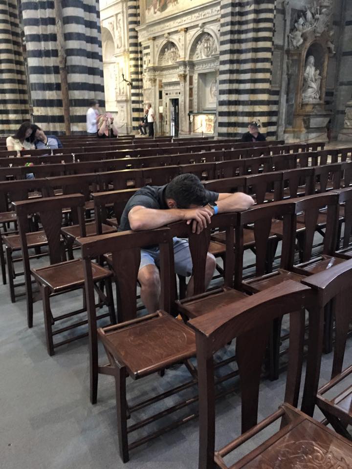 After touring the Cathedral for a while, we were all pretty exhausted…but umm, we are in a church so Robin actually might be praying there. Hmm…