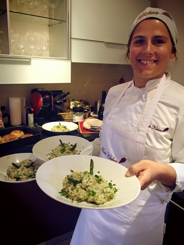 Barbara knew her way around the kitchen and we had a fabulous time. I realized if I ever want to cook a risotto again, it’s best to cook it with friends as you constantly have to stir the rice for half an hour. Barbara showed us how to take apart the whole chicken, and my dad (having worked on his family farm in Nova Scotia each summer) volunteered – I have to say, he did a pretty good job!
