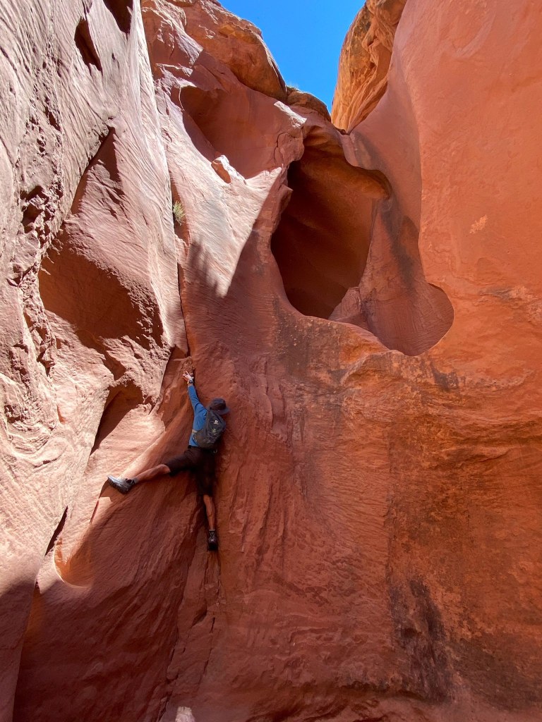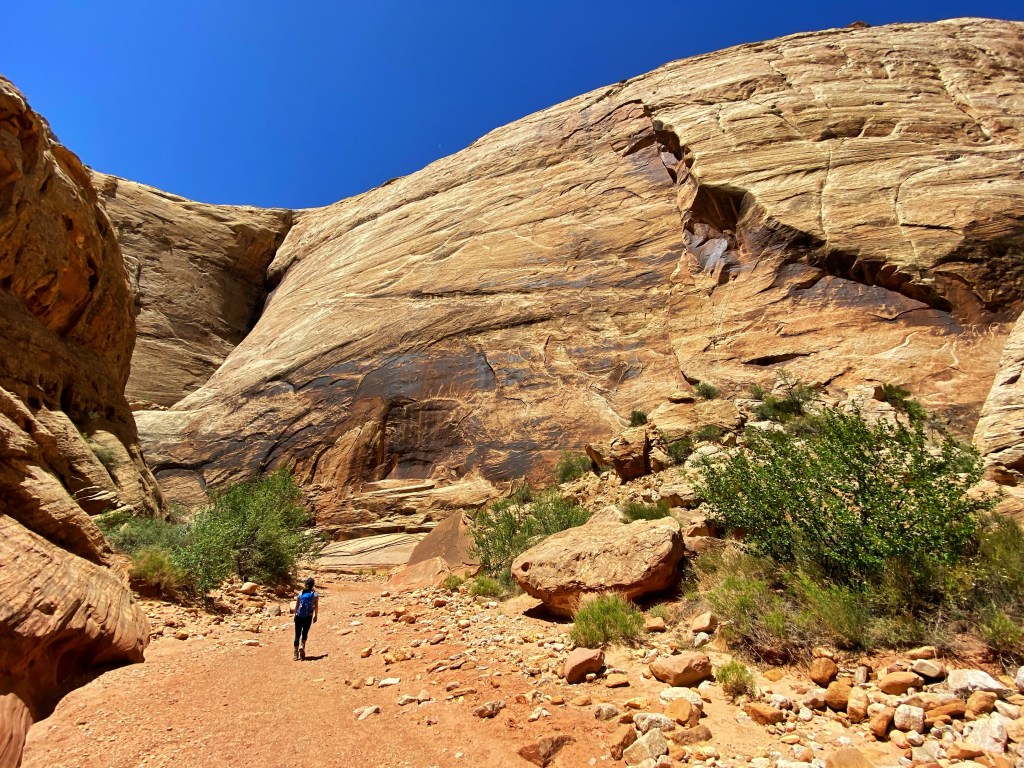 Monday: Escalante Natural Bridge hike. 3.81 miles and 140 ft elevation gain (flat). It included 11 river crossings! aka you’re either going to wear water shoes or take off your hiking shoes each time and go barefoot in, which is what we did. And you’re trekking in sand, so you’re moving pretty darn slow.